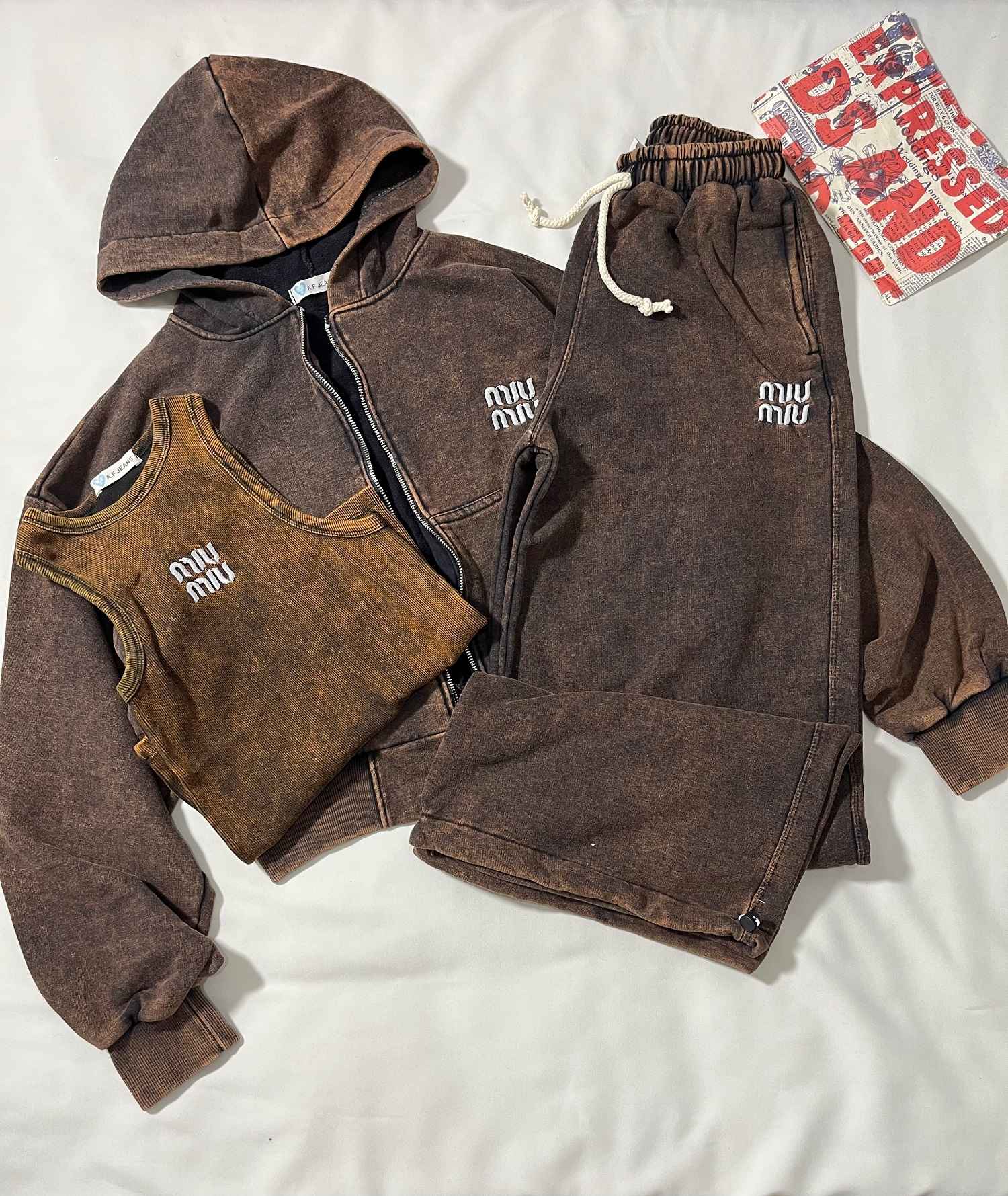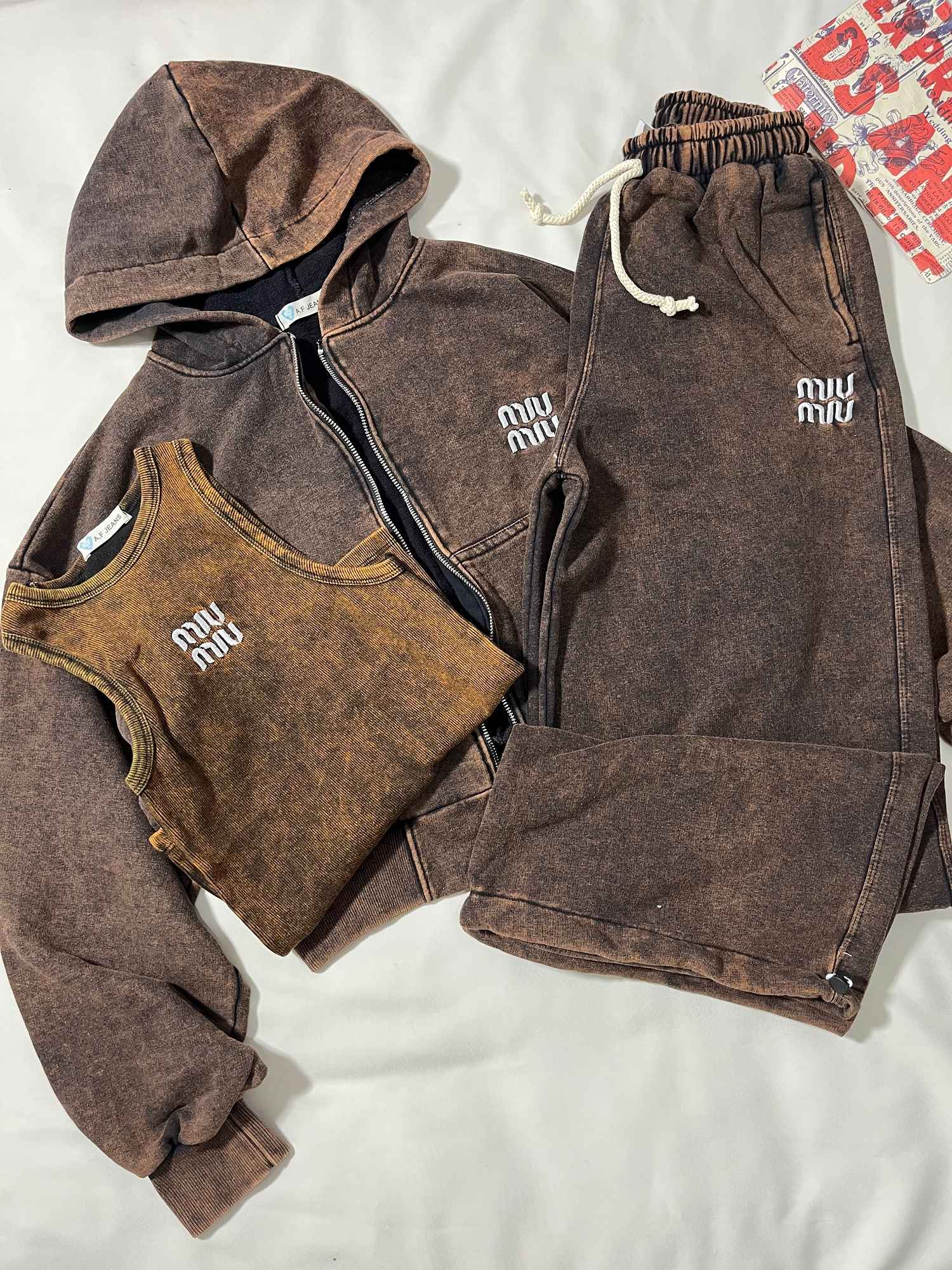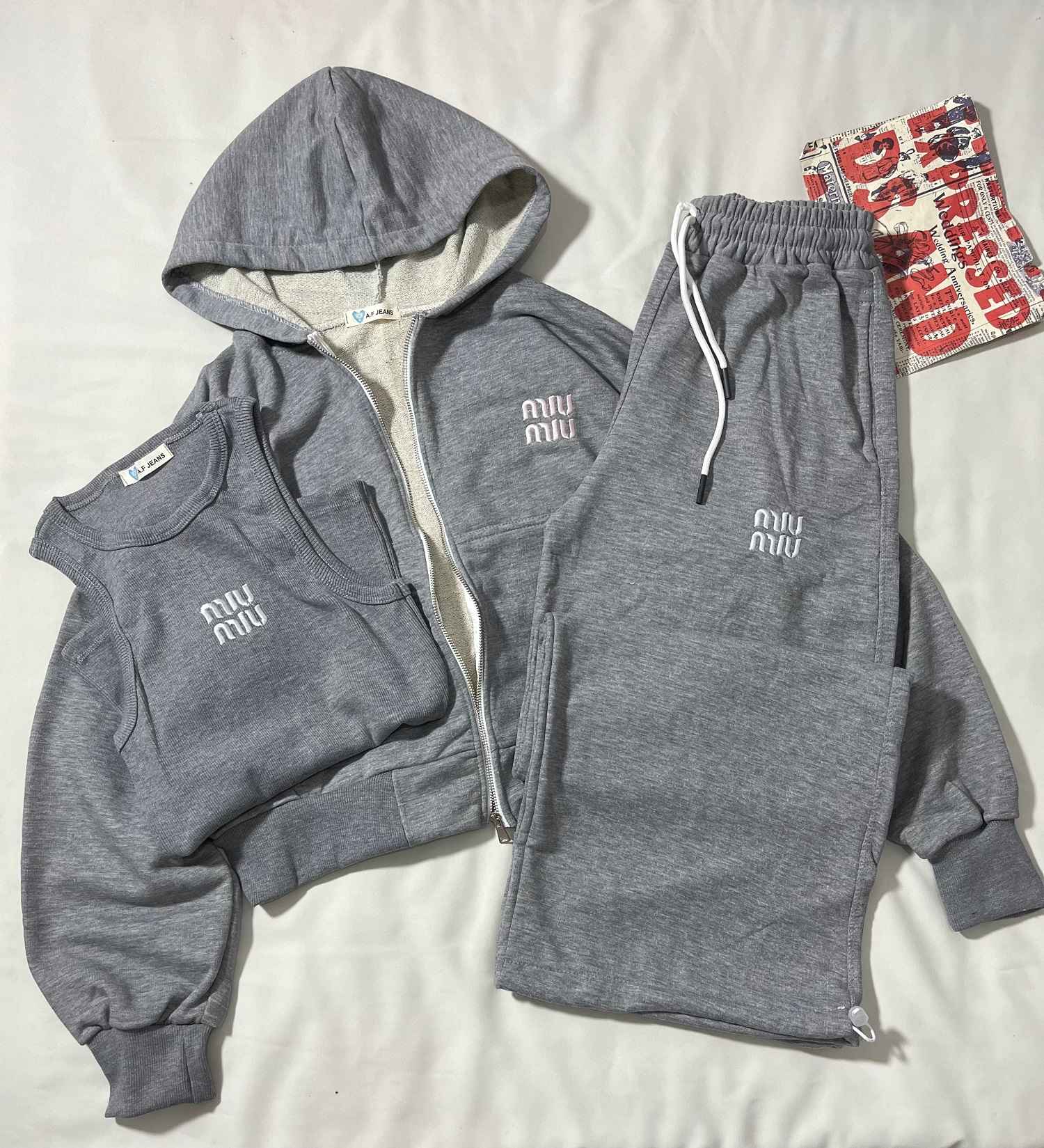 ست سه تیکه بگ جاگرشو کراپ و سویشرت سنگشور دورس سه نخ(3389)