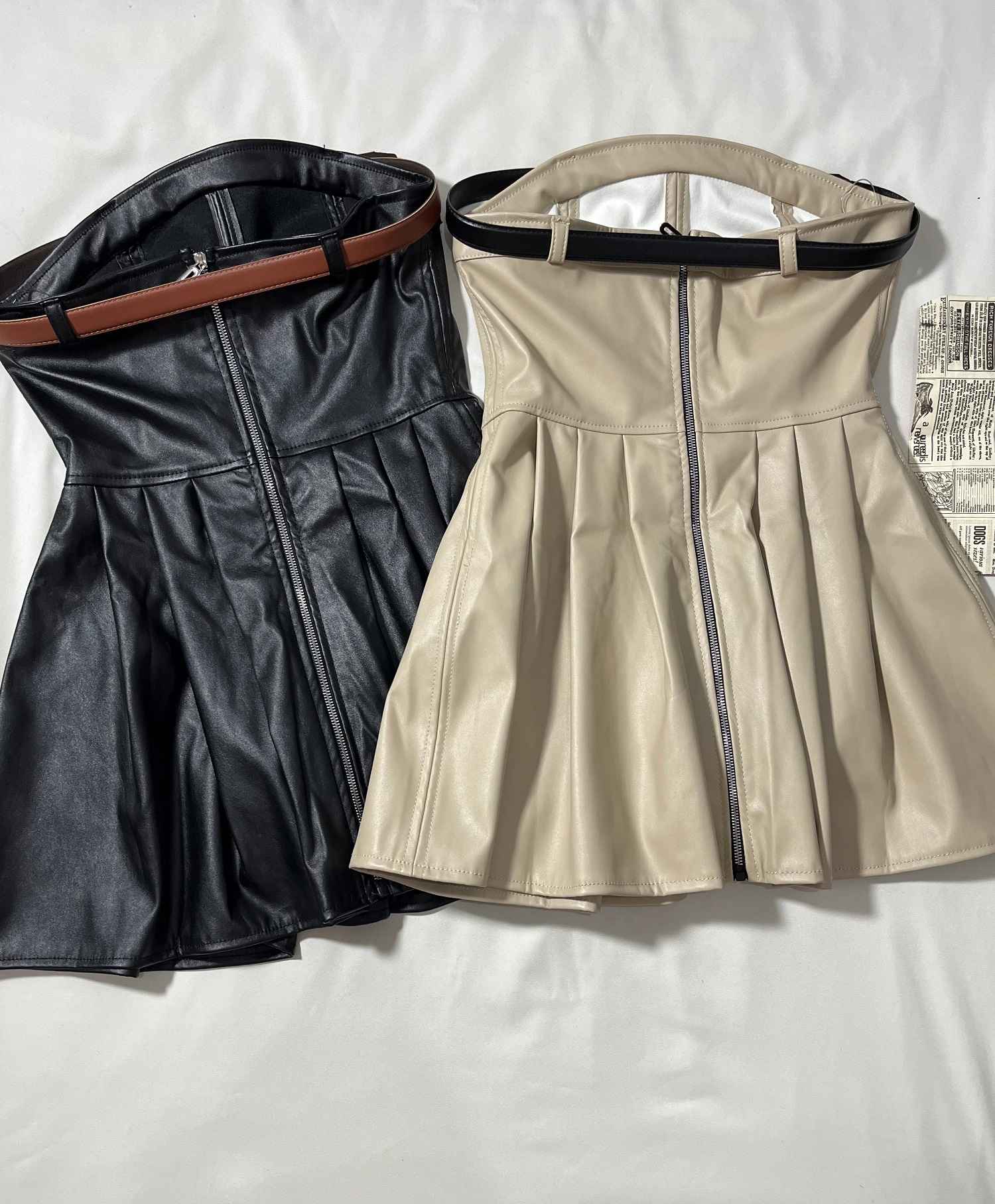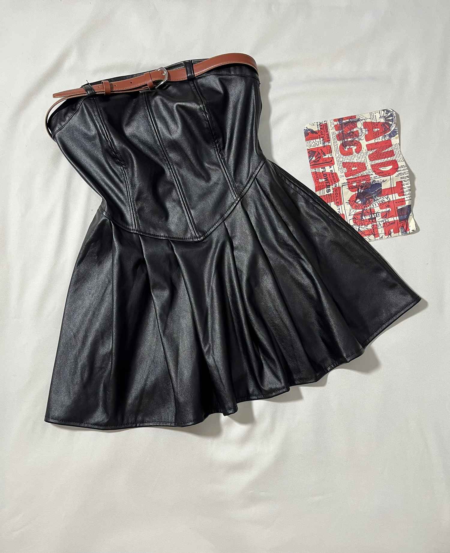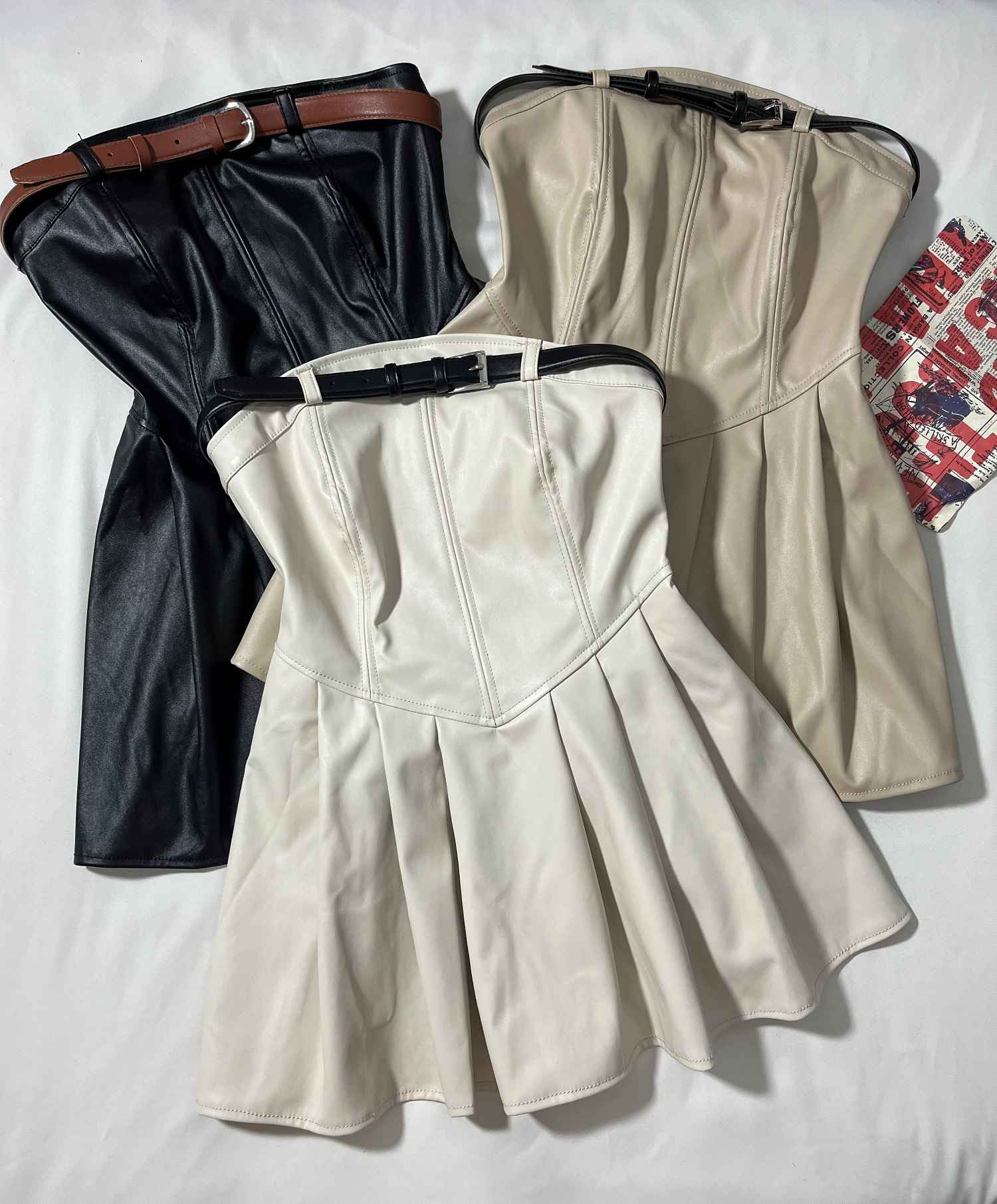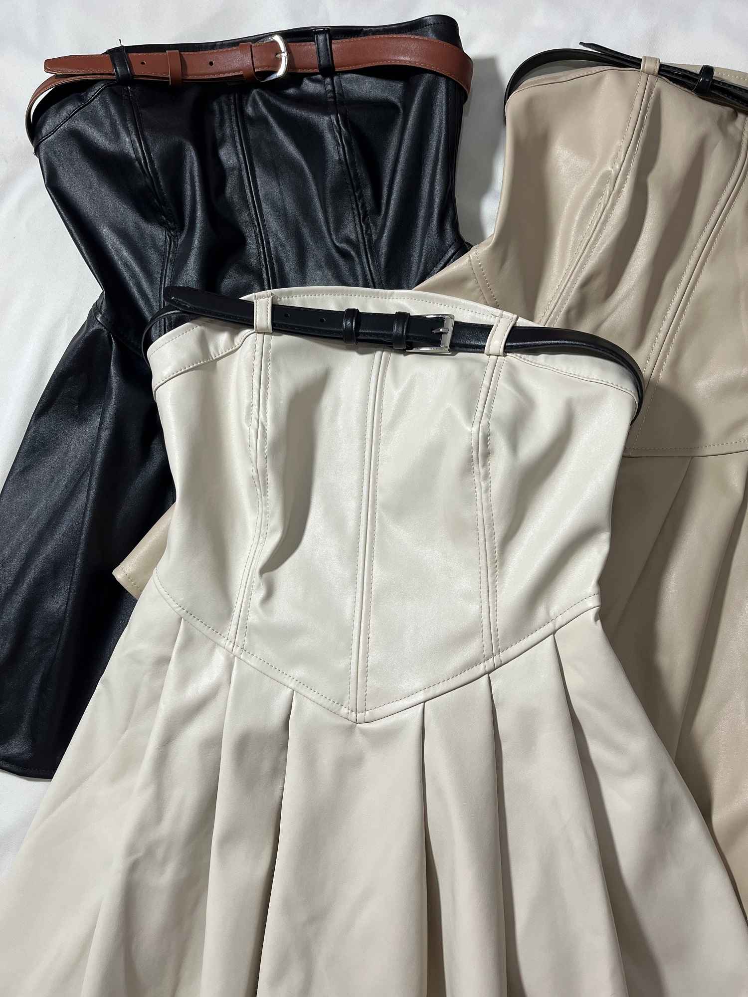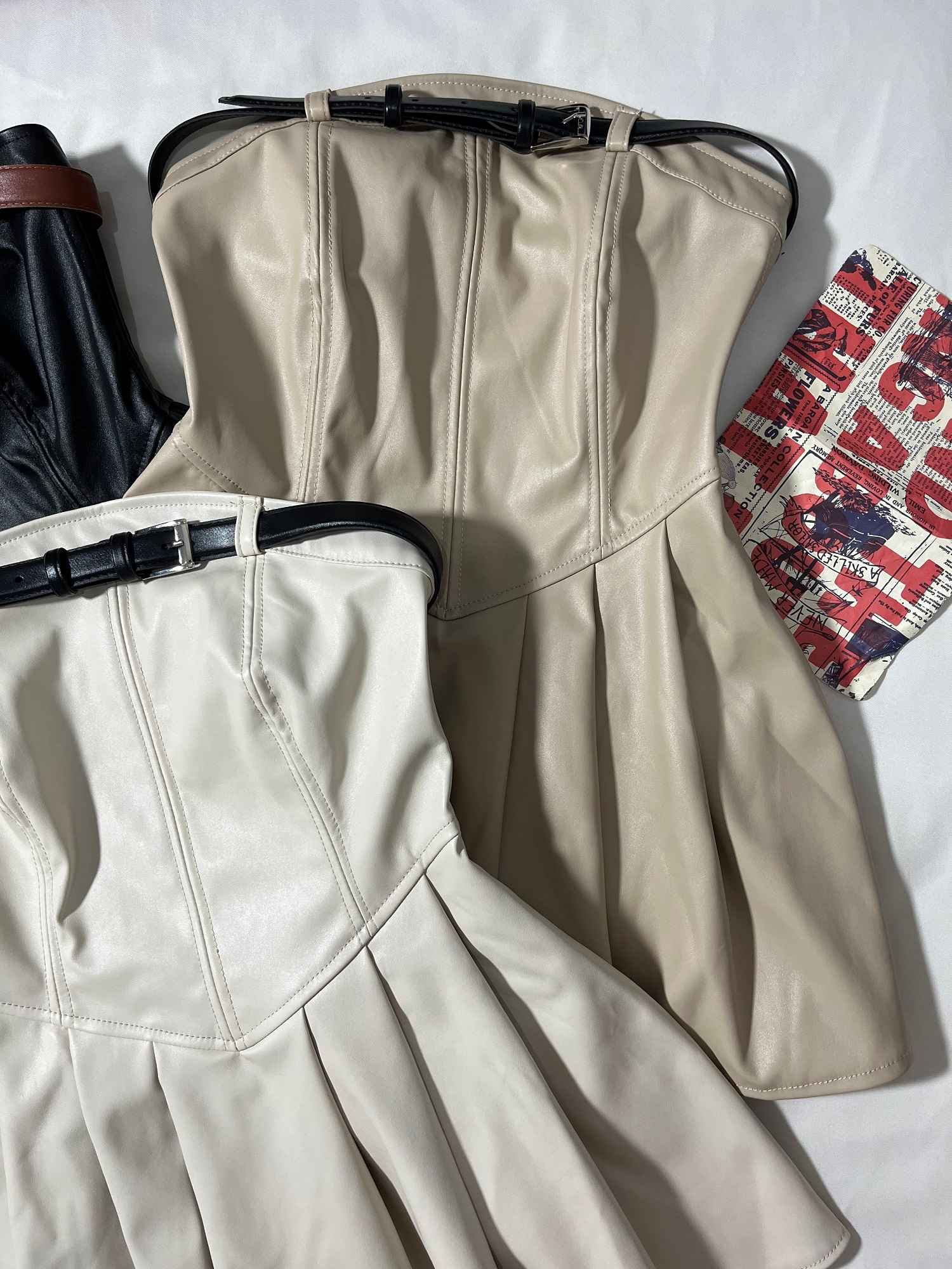 پیراهن دکلته چرم وارداتی سینه کمردار(3366)
